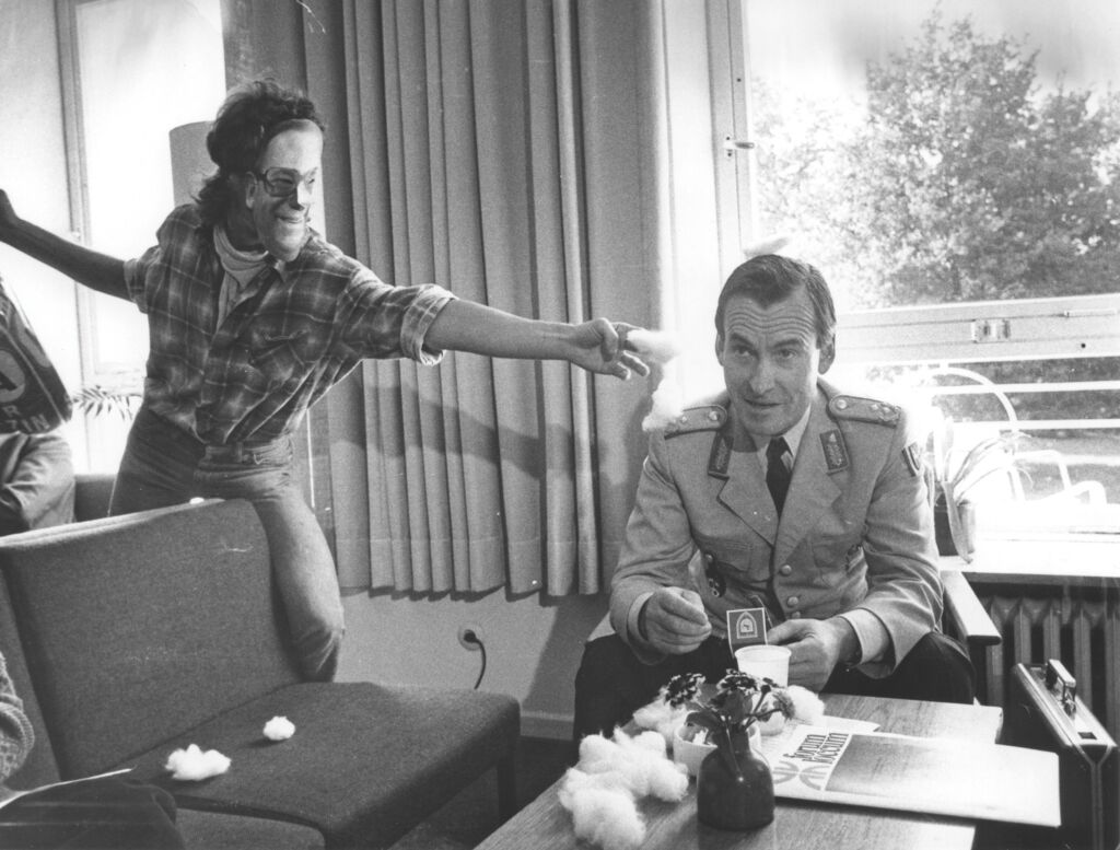 So gingen Bundespräsidenten in Loccum ein und aus, Innenminister kamen dramatisch mit dem Hubschrauber eingeflogen und landeten auf der Kuhweide zwischen Kloster und Akademie, Demonstranten schlugen einen Berliner Senator in die Flucht und ein General der Bundeswehr nahm den Anschlag mit Wattebäuschchen auf ihn gelassen hin. Die Hintergründe zu diesen und vielen weiteren Motiven werden in der Ausstellung durch kurze Begleittexte oder längere Anekdoten, die über einen QR-Code zugänglich sind, den Besucherinnen und Besuchern erzählt.