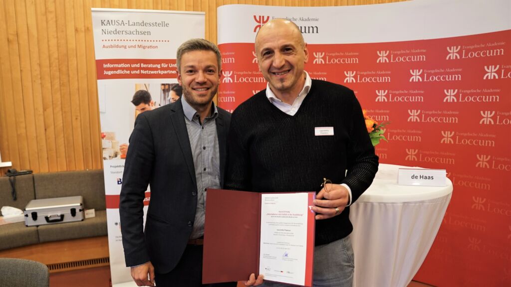 Die Auszeichnung wurde im Rahmen einer Kooperationstagung von Evangelischer Akademie Loccum und der KAUSA-Landesstelle Niedersachsen überreicht. Auf der Tagung erörtern 100 Akteure des Berufsbildungssystems Handlungsoptionen, wie die Potentiale des dualen Ausbildungssystems diversitätsorientiert ausgebaut werden können. Die dreitägige Tagung unter dem Titel „Ausbildung mit Vielfalt!“ dauert noch bis zum 21. April fort.